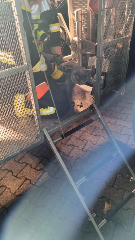 Eine Katze verhielt sich in den nächsten beiden Stunden auch konform unserer Erwartungen und gelang auf eigenen vier Pfoten wieder in die Wohnung zurück. Kater Janosch war etwas anderer Ansicht und spekulierte auf eine Fahrt mit der Drehleiter. Diesem Wunsch entsprachen wir natürlich gerne und übergaben ihn nach einer Fahrt mit der Drehleiter nebst Katzenleckerlies seinen glücklichen Eigentümern.